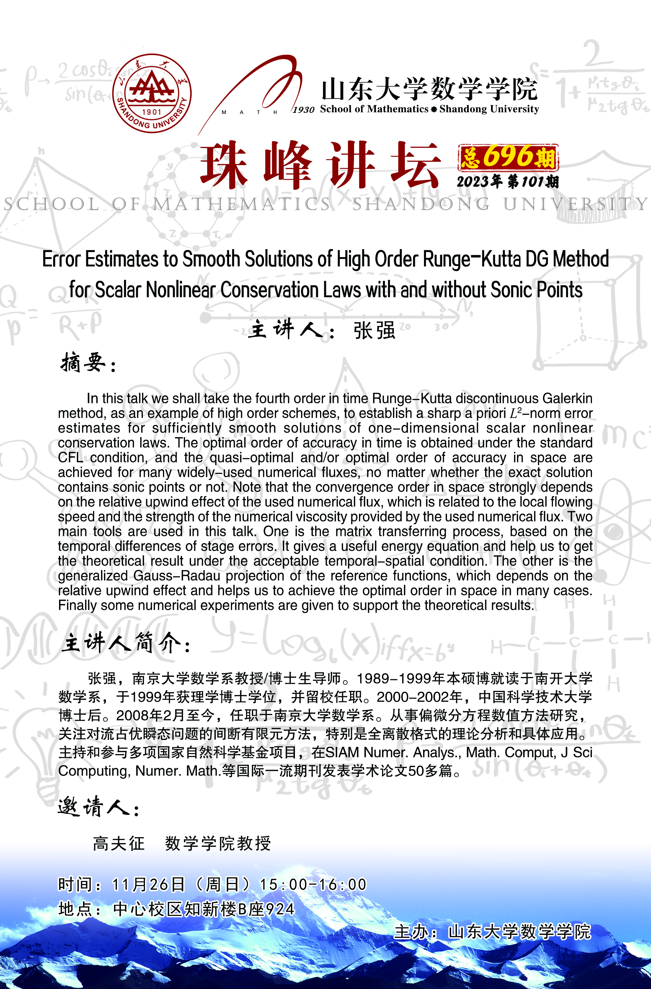 上一条:beat365中文官方网站珠峰讲坛第697期:Optimal L² Error Estimates of Unconditionally Stable FE Schemes for the Cahn-Hilliard-Navier-Stokes System