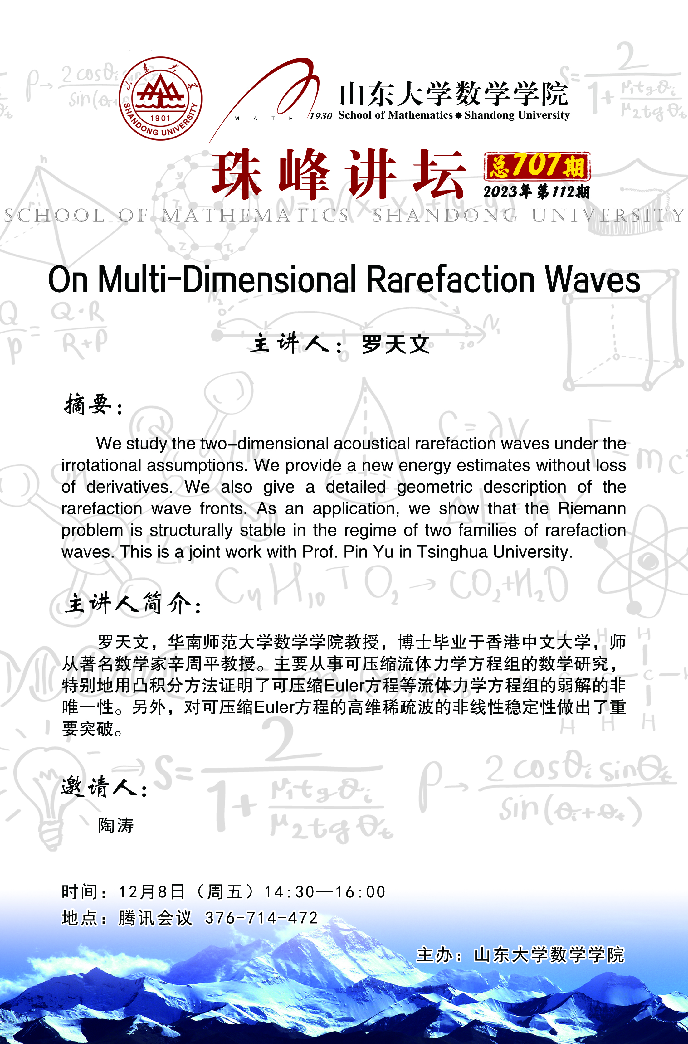 上一条:beat365中文官方网站珠峰讲坛第708期:Hydrodynamics of Biaxial Nematic Liquid Crystals: Biaxial Limit and Well-Posedness