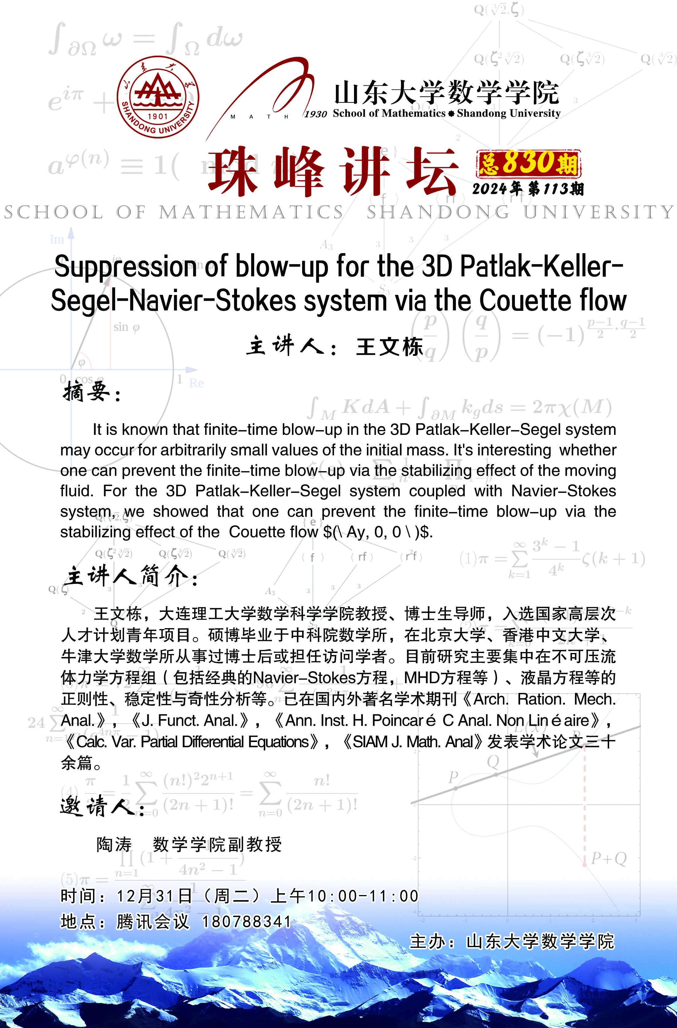 下一条:beat365中文官方网站珠峰讲坛第829期:Transverse Spectral Instability of Small Periodic Traveling Waves for the Euler-Korteweg System