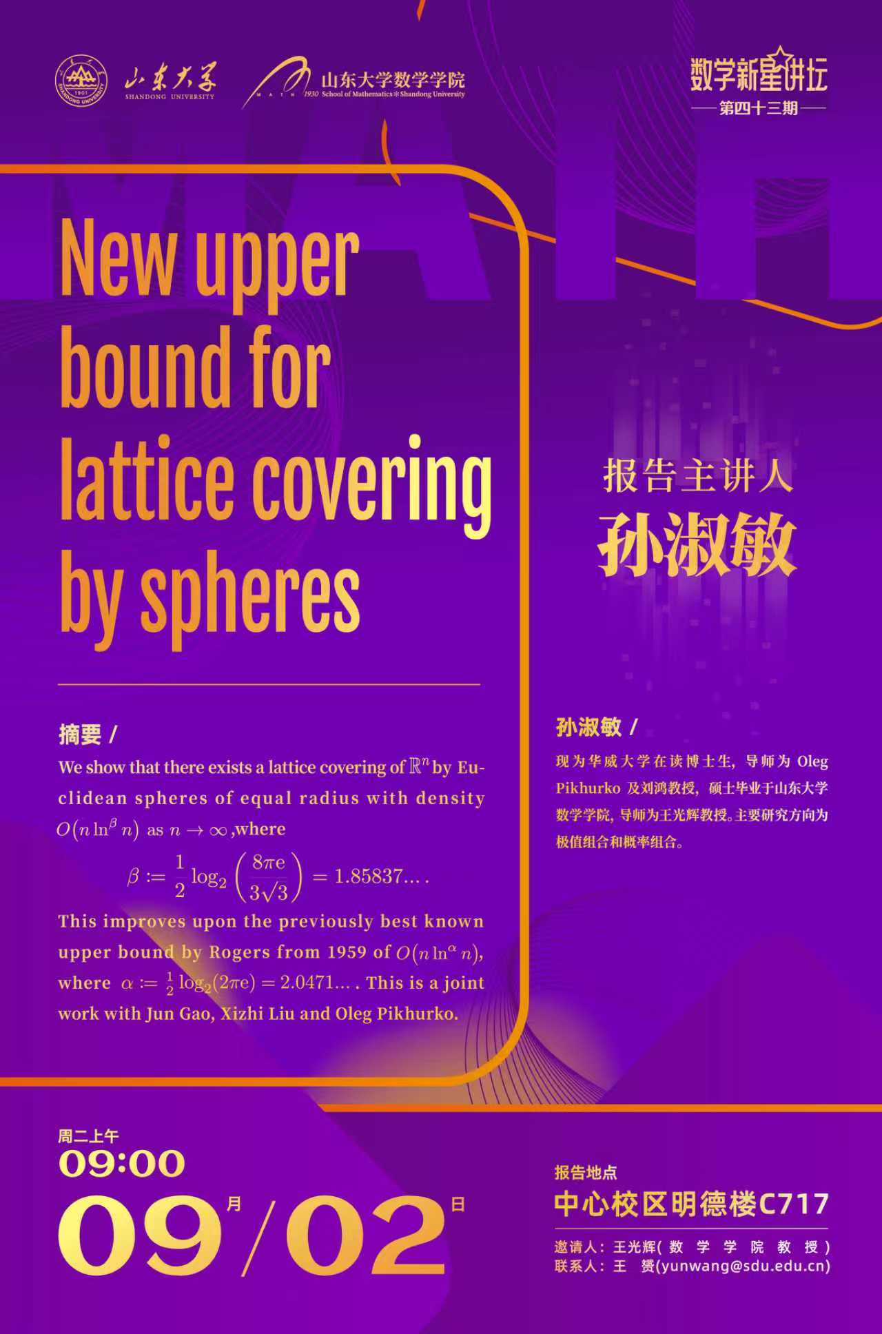上一条:beat365中文官方网站新星讲坛第44期:Set families: restricted distances via restricted intersections