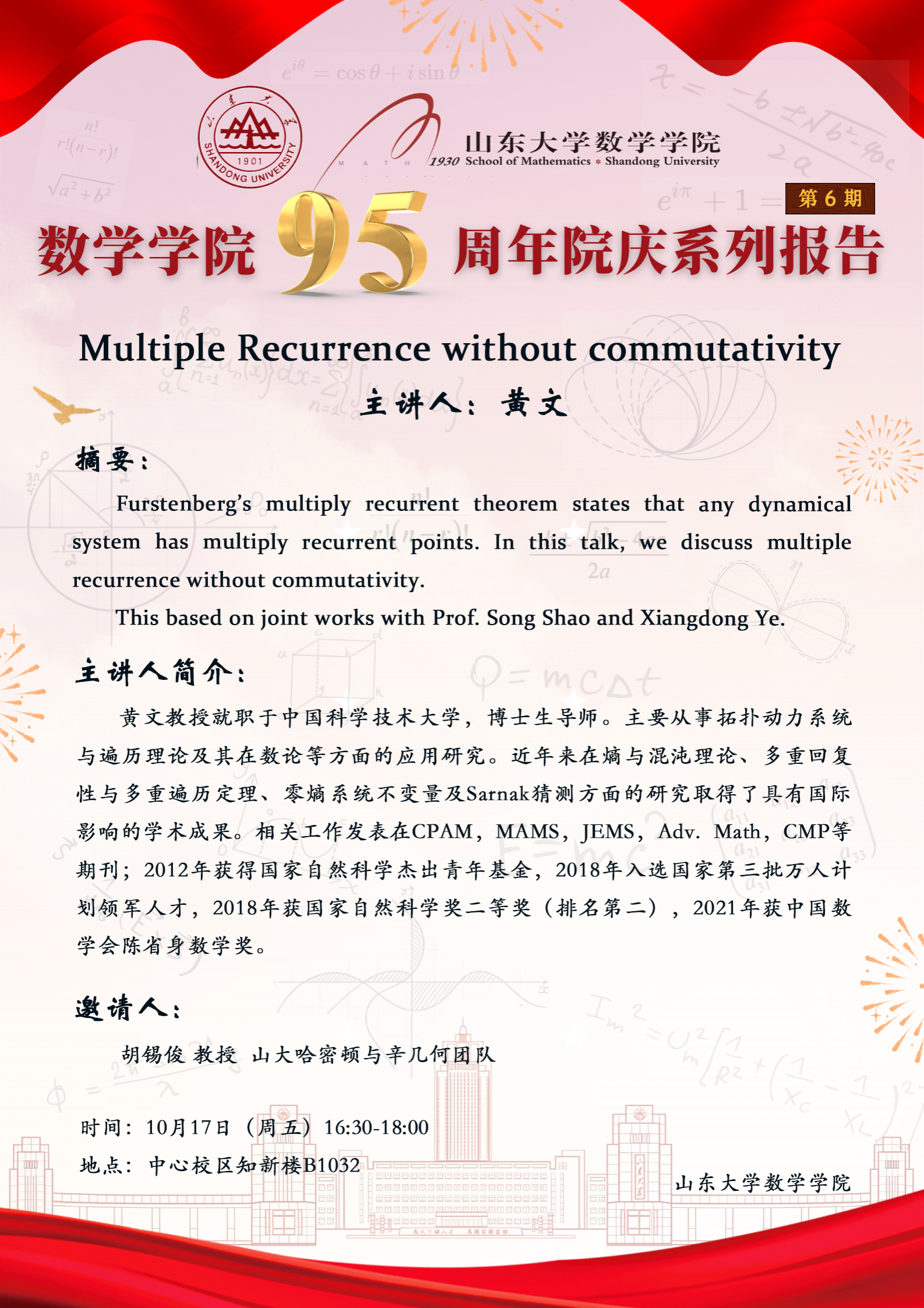 上一条:beat365中文官方网站95周年院庆系列报告第7期:Modelling heterogeneity and its effect on disease transmission dynamics
