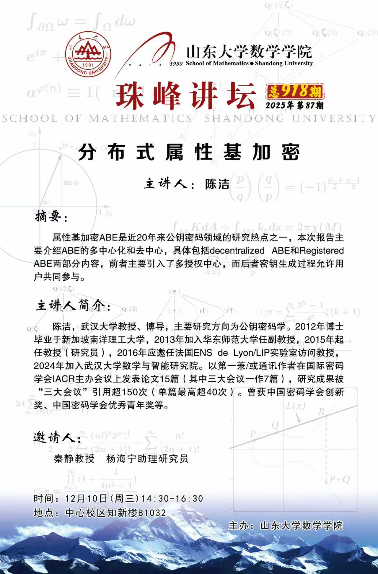 下一条:beat365中文官方网站新星讲坛第60期:Fully Adaptive Threshold IBE and Signatures in the Standard Model