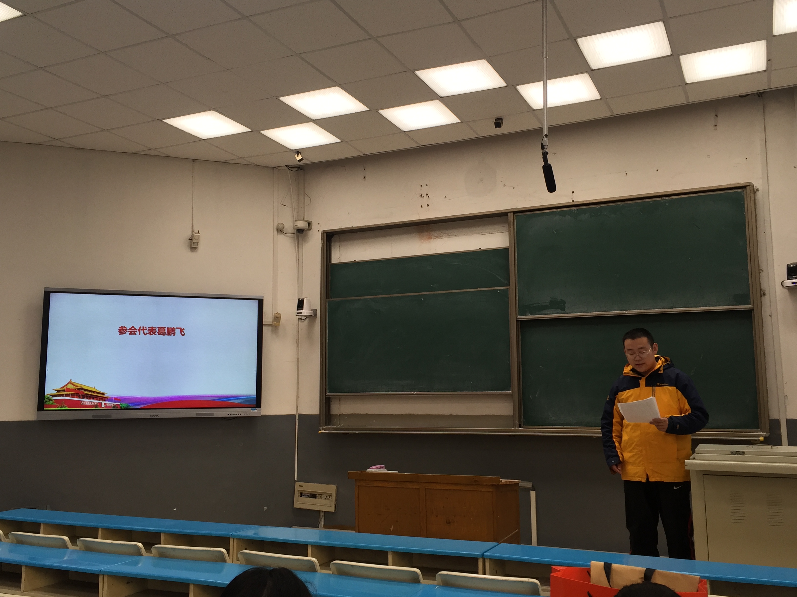 第二阶段,参会代表葛鹏飞介绍了12月20日召开的中国共产党beat365中文官方网站学院党员大会基本情况,传达了大会决议和曲明军书记所做的题为《谋宏篇 布大局 创伟业 以一流党建开启一流学科建设新征程》的大会报告精神,之后三名优秀应届毕业生代表陈婷、郭剑波、张智广畅谈了入学以来学院取得的发展进步,学习感悟和如何在未来工作岗位中发挥党员模范先锋作用。随后,本月转正党员王嘉欣和新发展预备党员代表邹晶丹结合时事分别就《争做合格党员》《讲规矩 守纪律》作主题发言。