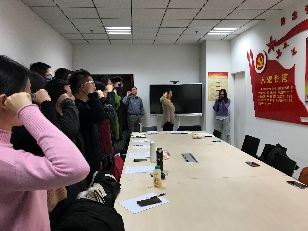 座谈交流后,全体新党员面向党旗进行了庄严的宣誓活动。