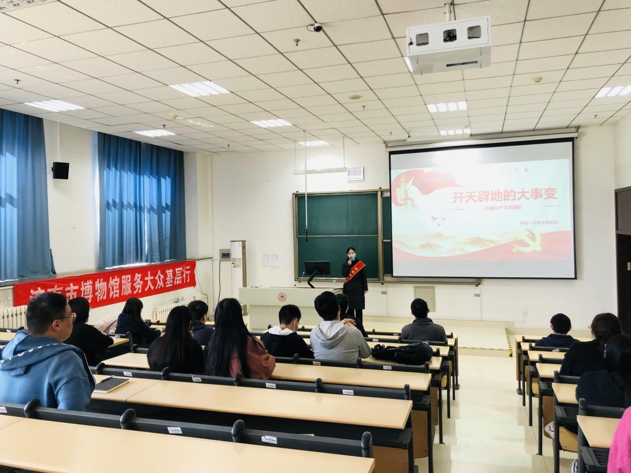 济南市博物馆的宣讲员从南京条约讲起,向大家讲述了那段屈辱的历史。一个个不平等条约、一张张触目惊心的图片、一个个可歌可泣的反帝反封建故事,让同学们深切感受到中国共产党的成立是中国近代历史发展的必然结果。接下来,宣讲员又为同学们介绍了中国共产党走过的光辉历程、取得的伟大成就、积累的宝贵经验。中国共产党成立百年,已经团结带领中国人民创造了历史的辉煌。“看历史,就会看到前途。”学习中国共产党百年历史,我们应该更加坚定“四个自信”,不忘初心、牢记使命,立足本职,永远奋斗,为中华民族的伟大复兴,为中国共产党谱写新的篇章、创造出新的更大辉煌贡献力量。