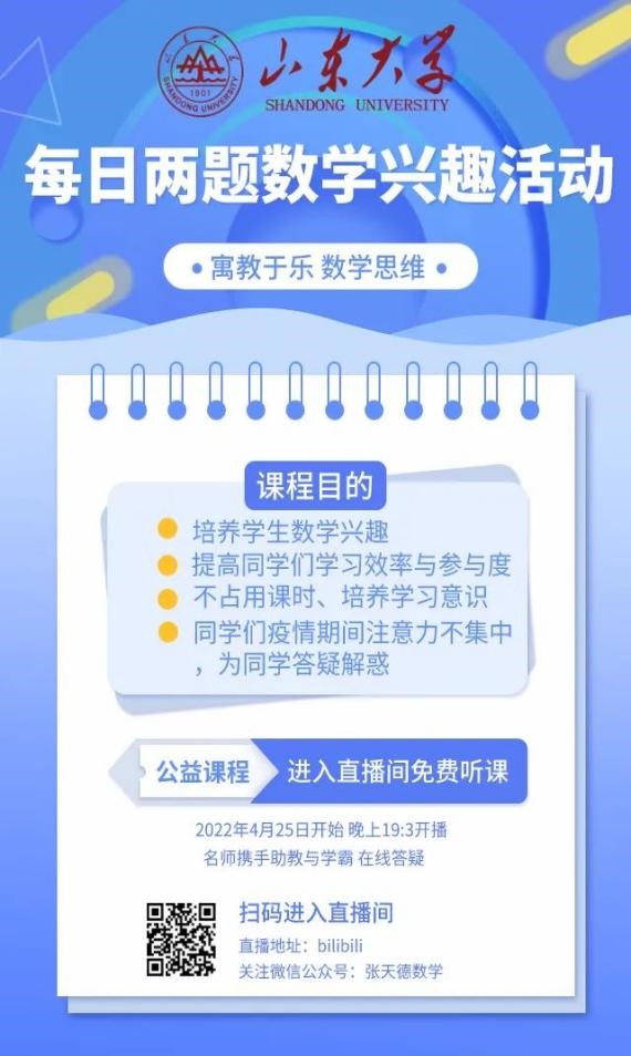 为配合同学们学好微积分、提高同学们的学习效率和兴趣,张天德老师与同学们进行了共同协商,在《1600题》中挑选出重点题目,安排两名助教和泰山学堂的优秀学子,从4月25日开始每晚7点半在bilibili视频网站开展“每日两题”线上公益教学活动。该活动引起了热烈反响,极大地调动了同学们的学习热情。
