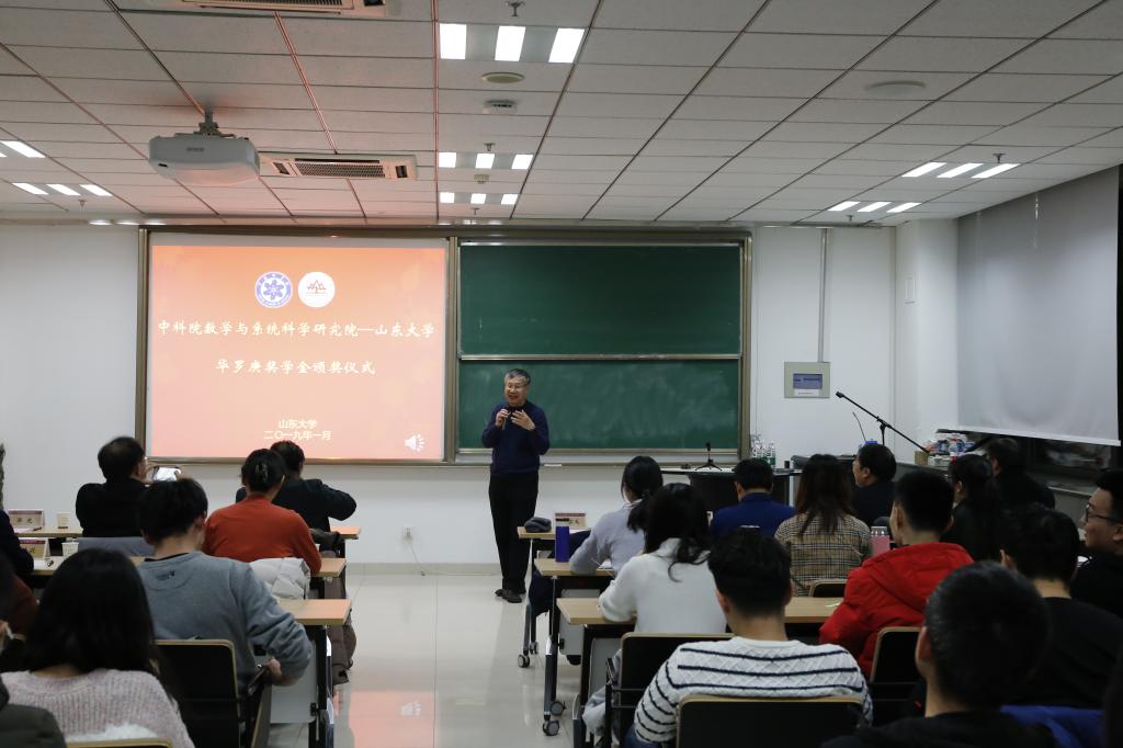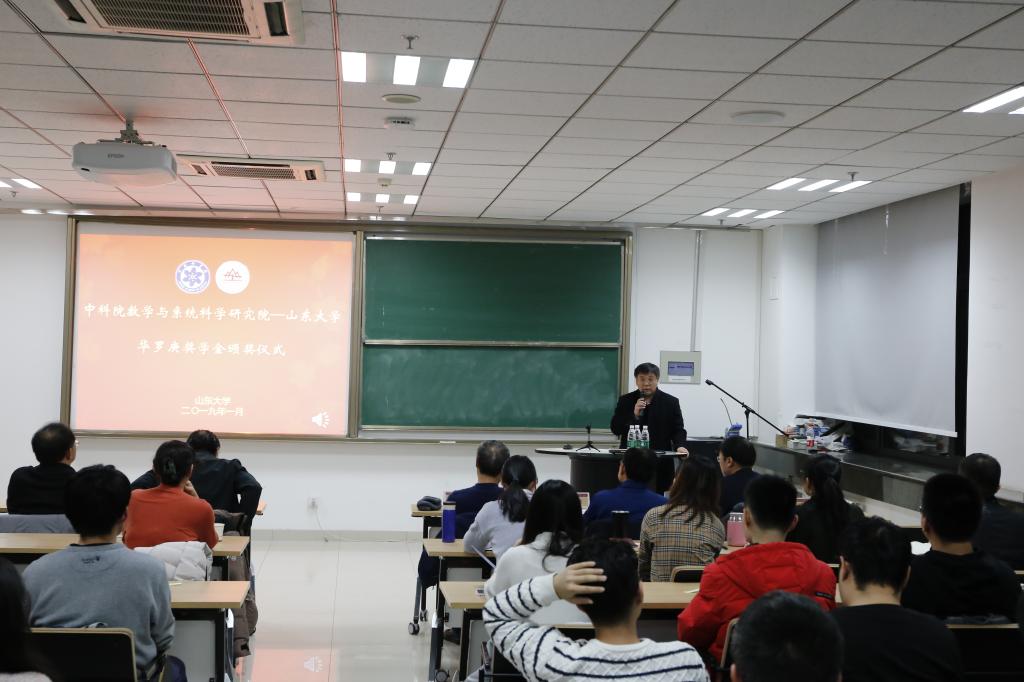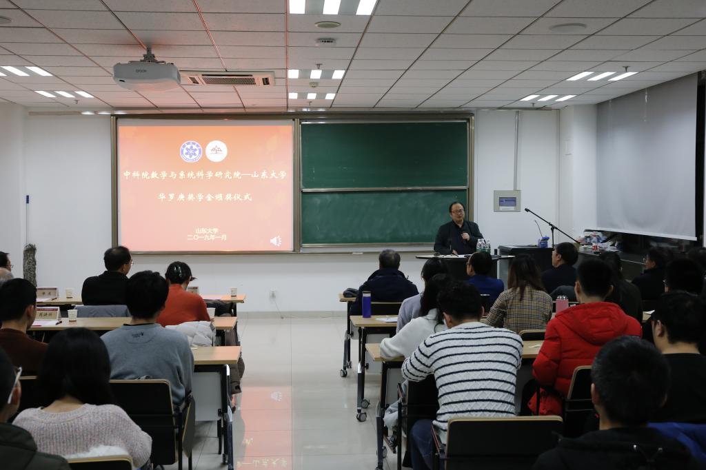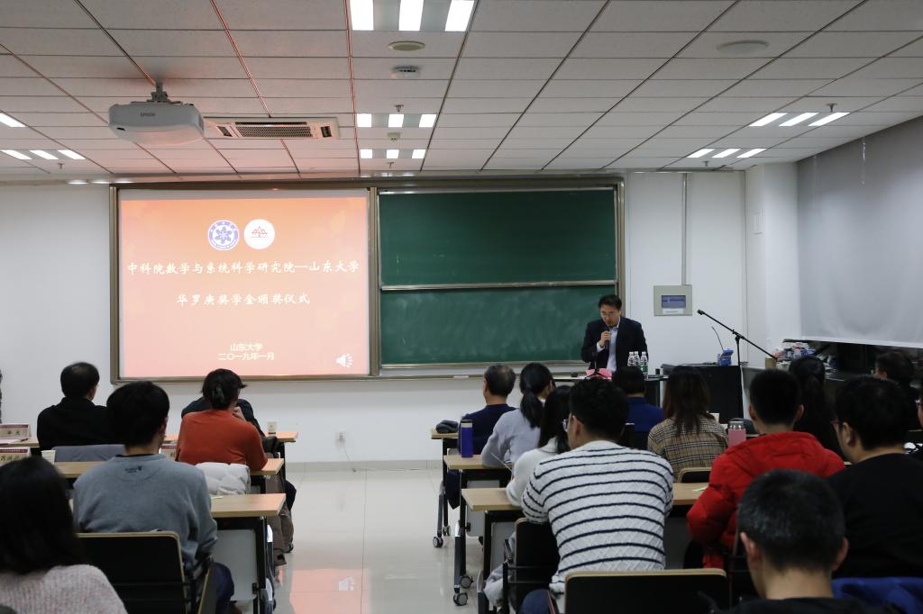 2019年1月10日,中国科学院数学与系统科学研究院——beat365中文官方网站“华罗庚奖学金”颁奖仪式在beat365中文官方网站中心校区举行。华罗庚先生之子华光及夫人江泳,中国科学院数学与系统科学研究院副院长巩馥洲,院长助理戴彧虹,研究生部副主任刘霞;中科院院士、beat365中文官方网站教授彭实戈,beat365中文官方网站本科生院院长刘传勇,beat365中文官方网站党委书记曲明军及相关负责人和获奖同学参加了颁奖仪式。颁奖仪式由beat365中文官方网站院长陈增敬主持。
