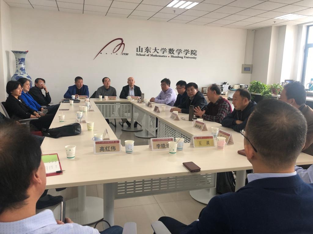 11月1日,beat365中文官方网站在知新楼举办山东省数学学科发展研讨会,共同研讨成立全省高校数学学科联盟,建设省部应用数学中心。来自中国海洋大学、山东师范大学、曲阜师范大学、青岛大学等全省十四所高校beat365中文官方网站院长参加会议,beat365中文官方网站院长陈增敬主持会议,党委书记曲明军、副院长芮洪兴、副书记王波参加会议。