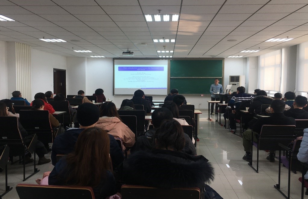 8日上午,刘发旺教授、曾凡海博士以及beat365中文官方网站张之华教授于知新楼B1238报告厅为大家做了精彩的学术报告。首先,刘发旺教授作题为“数值模拟复杂的动力系统及其应用”的报告,刘教授从自身科研经历出发,介绍了近二十八年来在澳大利亚昆土兰科技大学从事数值模拟复杂的动力系统的经验和体会,并借此勉励在场年轻学者要敢于探索,勇攀学术高峰。曾凡海博士作题为“Fast convolution quadrature for fractional operators”的报告,提出了两种用于分数阶算子快速卷积算法,并且通过数值实验证明了两种方法的高效性。张之华教授作了“数学的应用:气候变化”的报告,以数学为研究工具来模拟人类活动与气候变化的相互影响机制,同时进一步诊断气候突变特征以及预测气候变化的趋势。下午,老师和学生们与应邀前来的两位专家学者进行了更深一步的学术交流与讨论,大家纷纷表示收获颇丰。至此,本次会议圆满落幕。