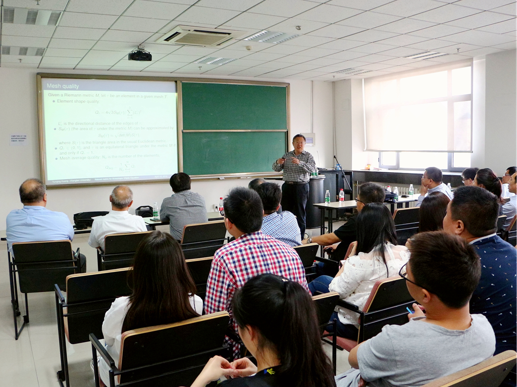 5月6日下午,湘潭大学校长黄云清教授应邀来到beat365中文官方网站,作了题为“Natural Metric and Anisotropic Mesh for Anisotropic Elliptic Equations”的报告。报告由中国科学院院士、beat365中文官方网站彭实戈教授主持。beat365中文官方网站副校长刘建亚、beat365中文官方网站院长陈增敬、副院长芮洪兴以及学院的部分教师和研究生参加了此次讲座。