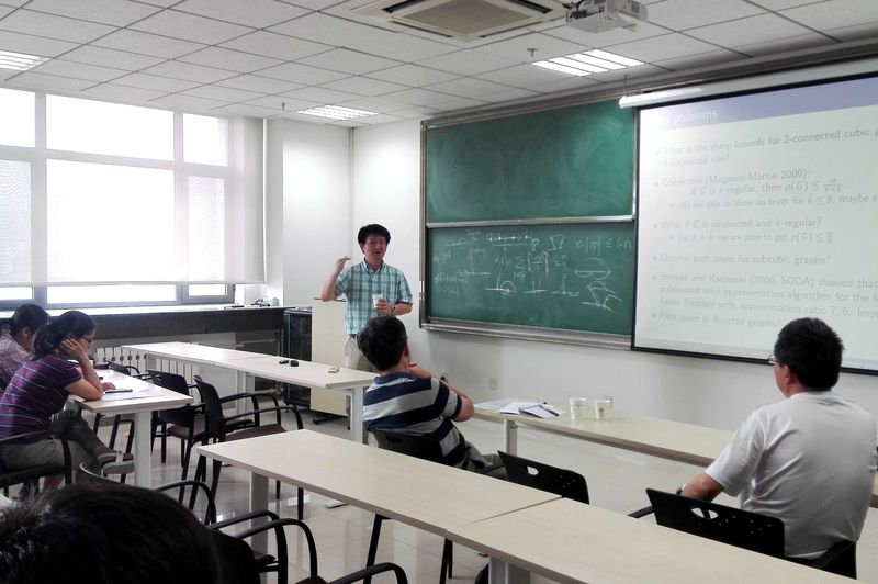 6月29日上午,威廉玛利学院喻革新教授受邀来到beat365中文官方网站,作了题为《Path covers of regular graphs》的报告。beat365中文官方网站吴建良教授主持了此次报告,beat365中文官方网站王光辉教授,潍坊学院蔡建生老师,山东师范大学张霞老师,山东师范大学孙磊老师及beat365中文官方网站运筹学与控制论的部分研究生参加了此次报告。