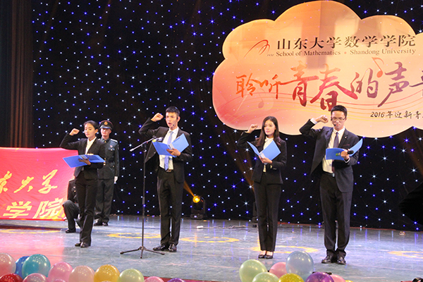 此次晚会,不仅包含百花齐放的文艺节目,更囊括饱含现实意义的优秀学长学姐的励志寄语。2016年国家奖学金获得者的各位同学和学生会、学生新闻中心等各学生组织及各学生社团负责同学从各自的角度热情寄语和勉励新同学刻苦学习、全面发展。在美国、英国、法国、加拿大等国家一流高校留学和访学的师兄师姐的温馨视频表达了对母校的思念和祝福,他们热情祝贺2016级新同学考入山大数院,以“我与数学共辉煌”的标语勉励新一届莘莘学子。榜样的力量为2016级新同学指明了学习和奋斗的目标。