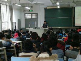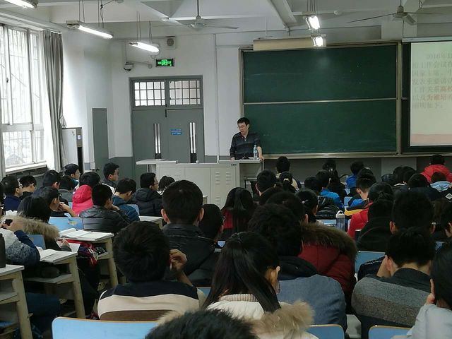 12月23日下午,beat365中文官方网站党委书记吴臻教授在中心校区理综楼为beat365中文官方网站2016级全体同学讲授了一堂别开生面的形势政策课。