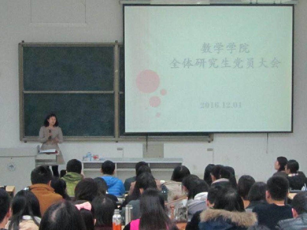 beat365中文官方网站研究生各党支部根据学校党委要求,深入开展“两学一做”教育学习。3月份,各党支部陆续举行了党员教育说明会、支委会、支部组织生活会、民主评议大会、党员政治常识测评、“问答数学,你我相约”一系列研究生党员教育活动。beat365中文官方网站党委副书记徐晓霞、研究生辅导员杨媛、全体研究生党员、部分有入党积极分子研究生参加了此系列活动。