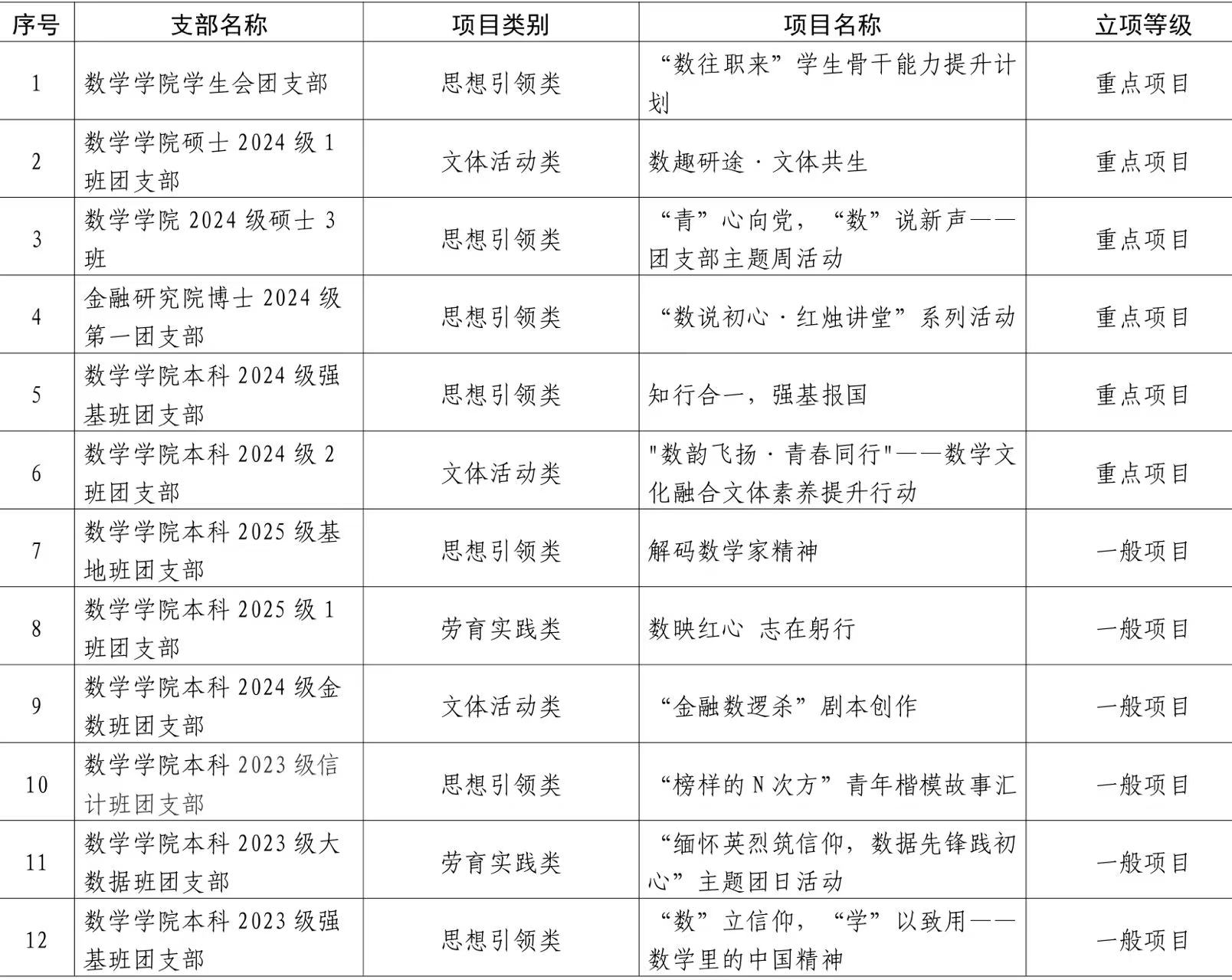 根据《关于开展beat365中文官方网站首批“先锋培育计划”团支部立项工作的通知》安排,经支部申报、年级审核、学院评审,现将立项结果公布如下:
