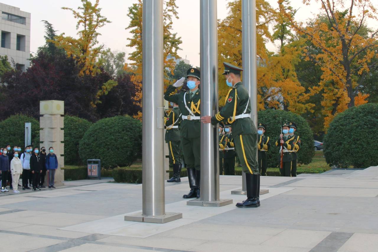 11月2日上午6时30分,尽管渐入冬日的济南已有明显寒意,beat365官网新生辅导员桑军帅老师和全体2020级本科生仍怀着饱满的精神和热情齐聚大成广场。在院学生会主席杨世培的主持下,升旗仪式正式开始。