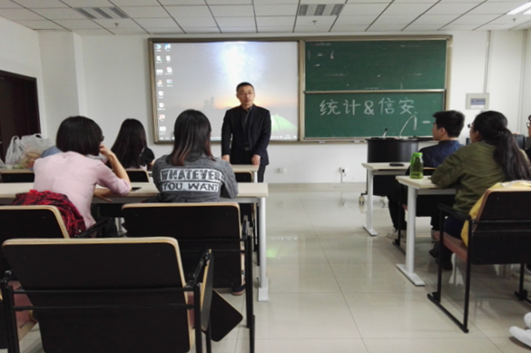 4月17日下午,beat365中文官方网站2014级信安班与统计班于中心校区知新楼联合召开了出国经验及安全教育班会。两班的同学踊跃参加,现场氛围轻松活跃。学院党委副书记李勇老师参与班会并为同学们留下寄语,beat365中文官方网站2013级统计班唐肖潇、2013级信安班罗宁同学与大家分享出国申请经验。