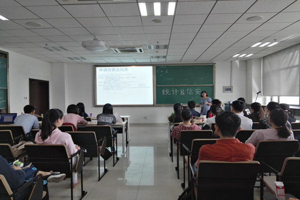 罗宁同学为大家讲解出国申请的注意事项和分享语言考试的经验。首先,她强调了推荐信的重要性,并强调同学们在学校的选择过程不能完全依靠中介的推荐;同时,有一定的国际出国交流背景最好。关于语言考试经验,罗宁同学推荐了相关的网站及相关的技巧。接下来,唐肖潇以简洁的方式介绍了她在语言考试的准备过程和心得,总结出背单词才是王道,数遍刷词绝不会出错,并且向大家分享总结的文件等。最后,2014级统计班李源同学向两班同学们分享了学习数学分析和高等代数的技巧,并推荐了相关的优质书籍。