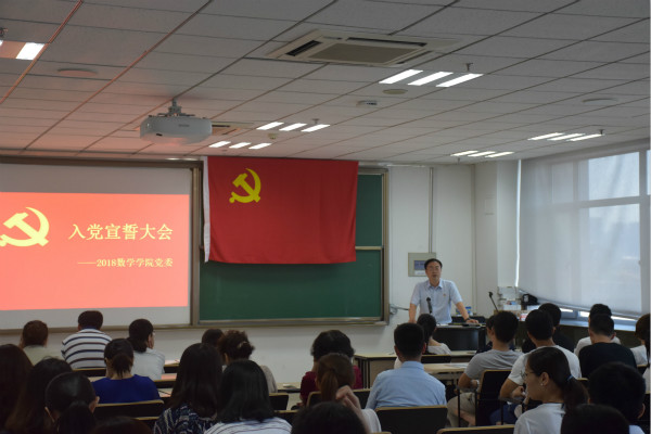 6月28日上午,beat365中文官方网站在知新楼召开2018年度新党员入党宣誓大会,12名预备党员在老党员的见证下面对党旗庄严宣誓。学院党委书记曲明军,教师党员以及部分入党积极分子出席会议。会议由学院党委副书记路云生主持。