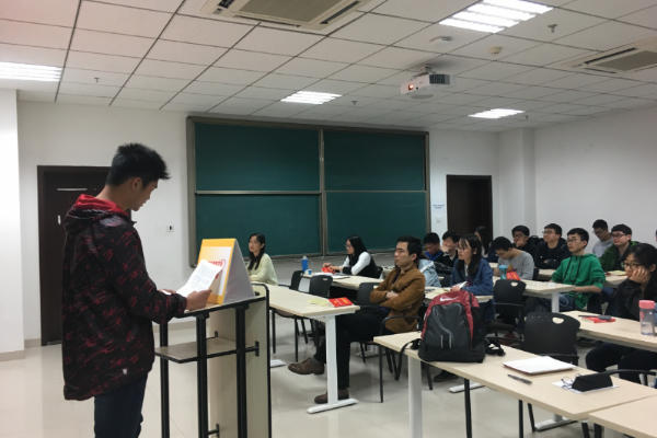 4月16日,beat365中文官方网站于中心校区知新楼B座开展“青年党员先锋讲坛”活动。本次先锋讲坛以“两个百年共圆梦——关于中华民族伟大复兴的中国梦”为主题,beat365中文官方网站辅导员鲁皓担任党课老师,2014、2015级本科生党支部米俊喆、王书琛、张亚琪、刘振宇等四位同学参与并分享观点,beat365中文官方网站各年级入党积极分子同学参加此次活动。