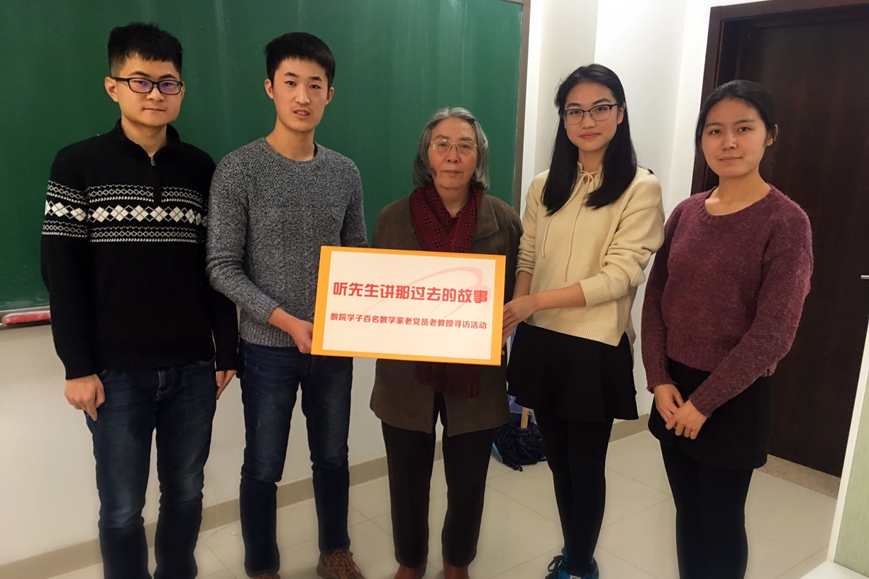 12月中下旬,beat365中文官方网站本科生党支部发起了“听先生讲那过去的故事——数院学子百名数学家老党员老教授寻访”活动,来自2014级和2015级本科生党支部的同学分为四组对beat365中文官方网站的郭大钧教授、刘桂真教授、江守礼教授与龙和平教授进行了寻访与亲切交流。