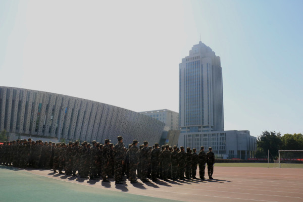 9月29日,晨光微露,2018级新生们便全副武装,迎来了新学期军训的最后一天,七点左右,各校区的新生和教官们便赶到beat365中文官方网站中心校区,准备完成汇报演出。迎着七点半温暖而不刺眼的秋日阳光,军训汇演的彩排拉开帷幕。
