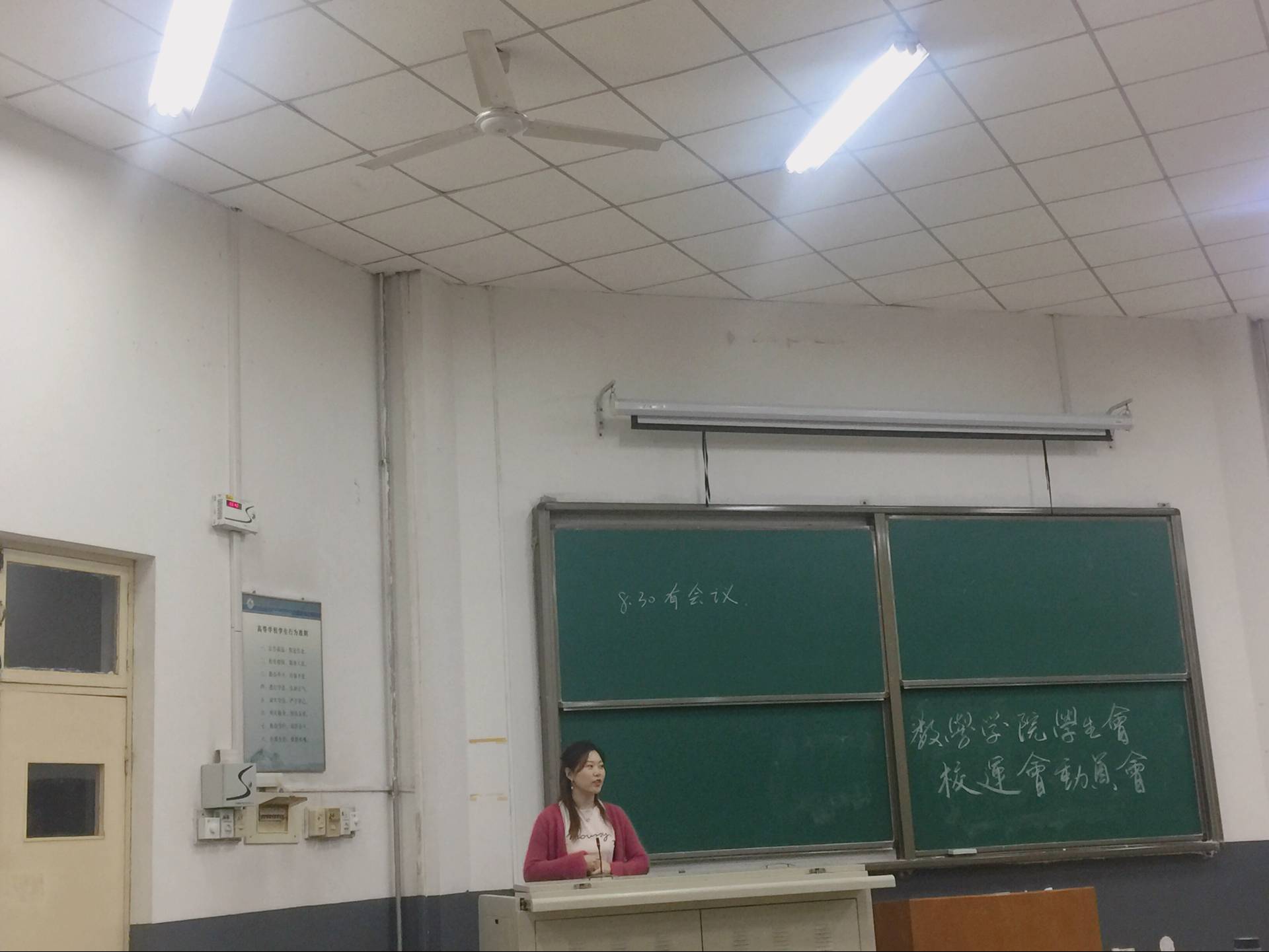 之后,学生会体育部部长李玉浩向各部门分发分工表,详细说明了各部门在校运会期间的分工情况,并强调了运动会的召开时间以及一些注意事项。最后李东霖做了总结,再次强调校运会期间的安全问题,并祝愿运动员能够在本次比赛中赛出风格、赛出水平。