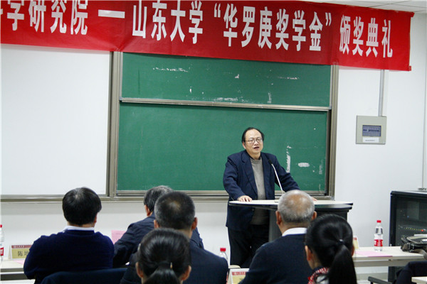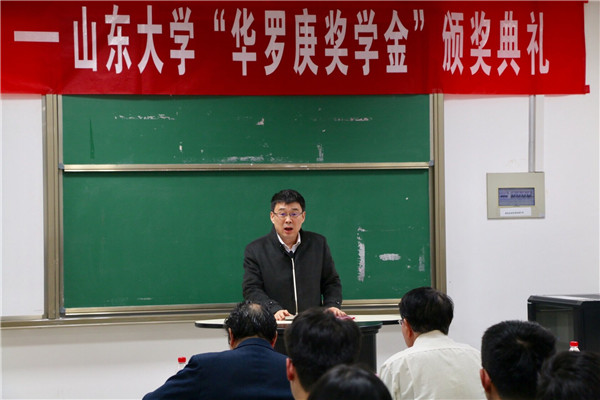 颁奖典礼上,赵炳新教授介绍了beat365中文官方网站“华罗庚班”的办学特色与建设情况,希望以“华罗庚班”为纽带,进一步加强beat365中文官方网站与中国科学院数学与系统科学研究院的深度交流合作,充分依托这一优势育人平台,促进本科生教育的快速发展。巩馥洲教授从自身经历出发,提出基础数学的学习与研究不仅需要不断创新、勇于探索的信念,更需要持之以恒的耐心与坚韧不拔的毅力,“皓首穷经,矢志不渝”,巩馥洲期寄华罗庚班的同学们不止把本次获奖当做荣誉,而更是看作一种鞭策,努力传承数学前辈精神,再接再厉,勇攀高峰。陈增敬教授介绍了beat365中文官方网站“华罗庚班”在教学科研和拔尖人才培养等方面的情况,希望进一步加强beat365中文官方网站与中科院数学与系统科学研究院在人才培养、教学科研、学术交流等多个方面的深入合作,进一步在多个方面实现全方位的合作共赢。他勉励“华罗庚班”的同学们要以华罗庚先生为榜样,刻苦努力、积极向上,找到数学学习的乐趣并付出更辛勤的努力,不忘初心,方得始终。张波教授宣读了华罗庚奖学金获奖名单,双方与会嘉宾为获奖的20名华罗庚班同学颁奖。2016级华罗庚班获奖学生代表耿智斌同学发言,表示自己将时刻牢记数学先辈们的奋斗经历,潜心研究、孜孜不倦,以先辈们为榜样,怀着热爱数学的心,在数学学习的道路上攻坚克难,不断前行。