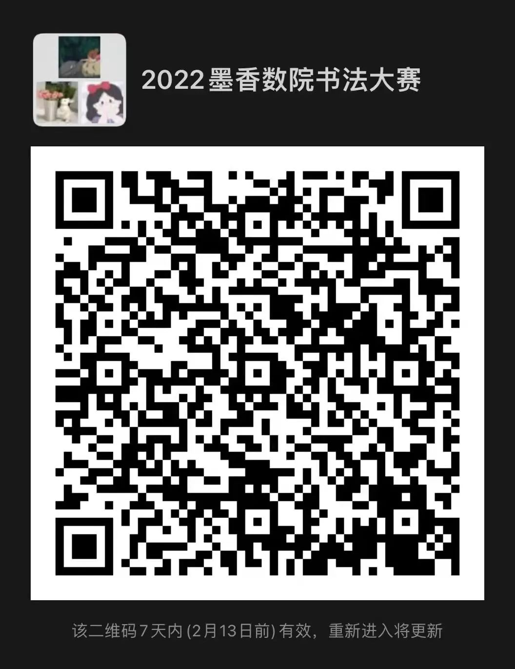在活动时间内将书法作品图片以附件形式发送至研究生会邮箱:sdusyyh@126.com。并扫描下方二维码进入比赛微信群,将邮件截图发在群里即报名成功。