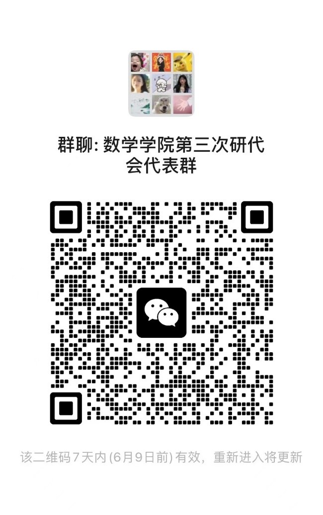 各支部书记负责组织本支部研究生代表的报名,请有意向作为代表参会的同学向本支部书记报名,并加入微信群(见二维码)。支部书记收集填写好附件一后于6月4日12:00前发送至邮箱2373014912@qq.com,代表名单将于大会前进行全院公示。
