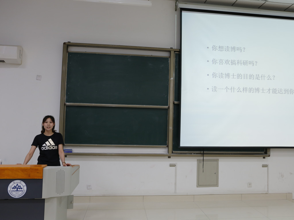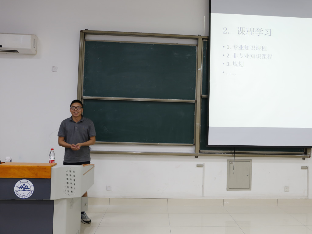 接下来,2016级硕士高小斐介绍了中科院研究所的申请流程,并且建议大家可以多方面进行准备,她讲到,复习与找工作并不矛盾,最重要的在于自身能不能坚持。