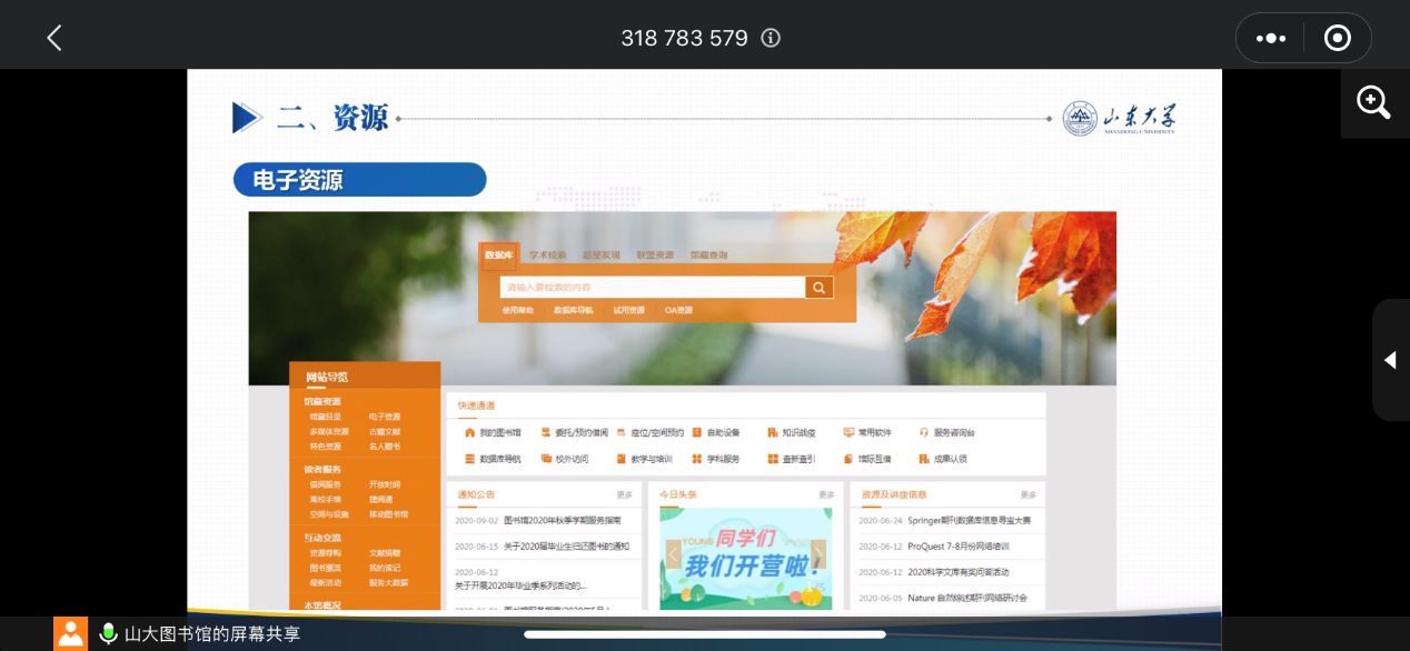 9月16日下午,beat365中文官方网站图书馆信息咨询中心的老师为beat365中文官方网站2020级研究生新生做了“图书馆服务与资源举要“的线上讲座,给同学们介绍了山大图书馆的馆藏以及查阅相关资料的方法。