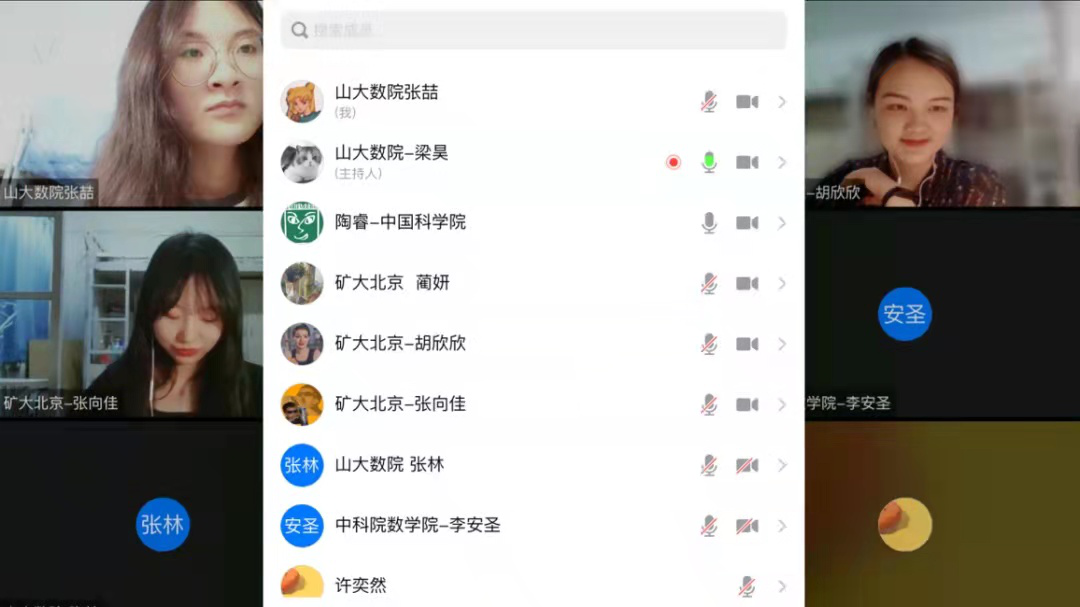 接下来,由中国科学院数学与系统科学研究院研会代表陶睿同学介绍其研会的组织体系构建情况,分别从体育运动、文艺工作、学术实践三个方面介绍了研会主要特色活动,主要包括“毕业生线上欢送会”、“我心中最美的公式定理分享”、“中国科学院数学类研究生学术论坛”等活动。并以研究生学术论坛活动向各高校发出邀请,鼓励大家进一步交流合作。