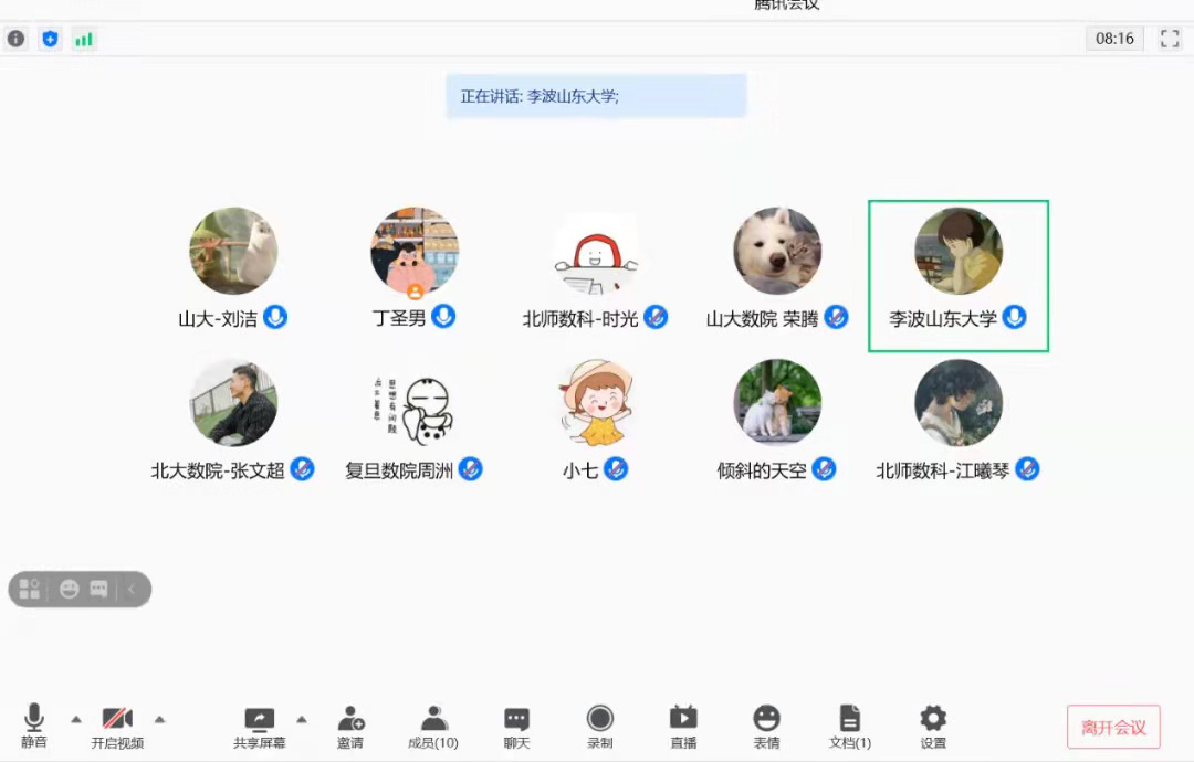 本次交流会由beat365中文官方网站数院研会主席丁圣男主持,beat365中文官方网站数院研会新媒体部长李波、学术部部长荣腾同来自北京大学、复旦大学、北京师范大学的11名代表齐聚线上交流。