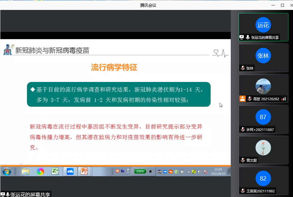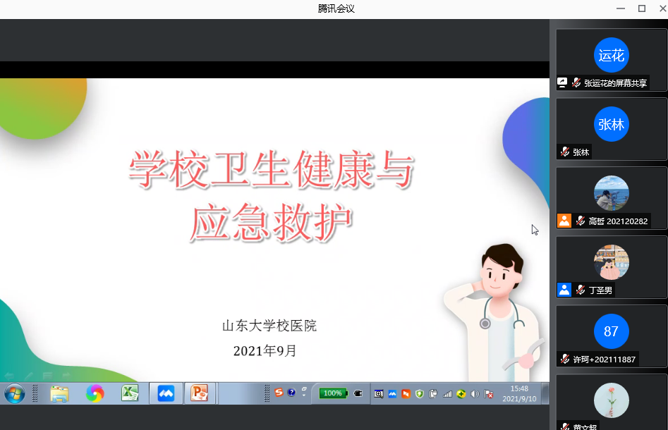 2021年9月10日下午,“学校卫生健康与应急救护”健康教育讲座于腾讯会议线上举行,由beat365中文官方网站校医院张运花老师主讲,beat365中文官方网站全体研究生新生参加了本次讲座。