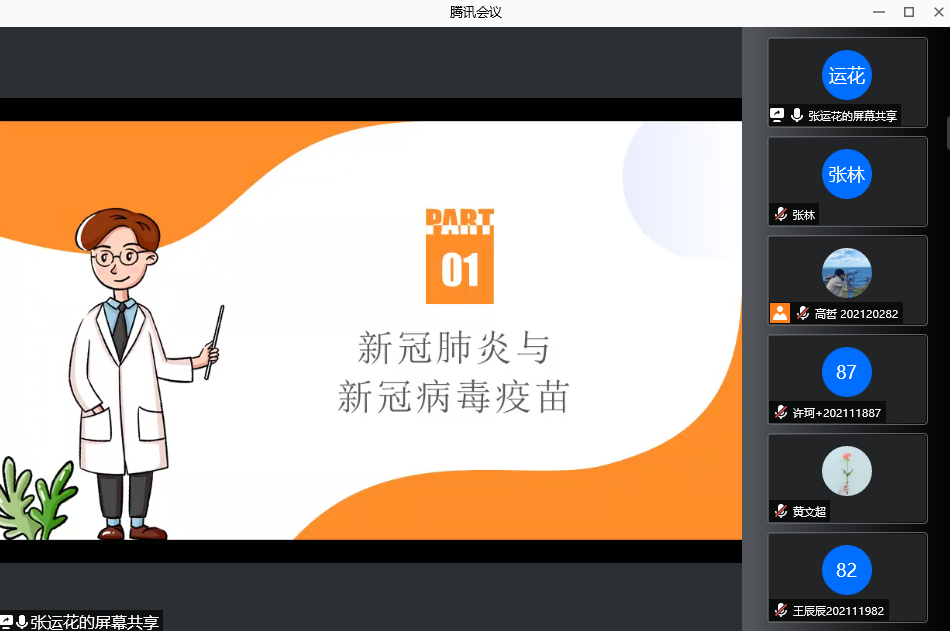 本次讲座为我们介绍了新冠肺炎的传染源、传播途径、易感人群、临床表现等知识以及如何防范不断变异的新冠病毒毒株;提出了疫情常态化防控下的应急处理方法和校园常见传染病防控措施,向我们介绍了如何正确认识校园常见疾病以及日常预防措施。
