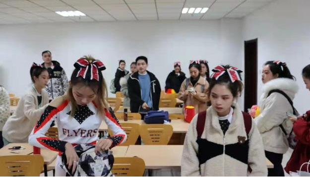 21日清晨,数学金融联队早早来到后台,在学姐们的协助下画好妆容换好队服整理好发型,满怀期待地进入候场室展开准备工作。而此时的观众席上,beat365官网同学也早早就位,时刻准备为啦啦队成员们应援打call。
