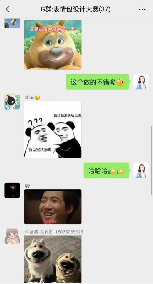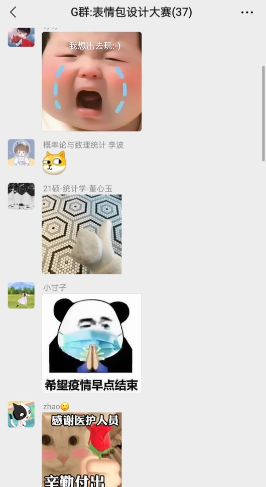 在活动过程中大家不仅分享自己设计的表情包,还经常在群里斗图聊天,分享自己最近的生活趣事,通过这个比赛大家获取了许多快乐源泉,缓解了隔离期间无聊压抑的心情,让大家的隔离生活变得丰富多彩!