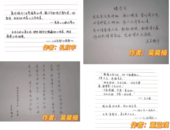 诗词字画,纸短情长,却最能抚慰人心,以文字温暖心灵,传递抗疫力量。在此次活动中,数院学子积极参与,大家泼墨挥毫,于行水流水和整齐划一中展现了诗词著文的力量,在隔离生活中用文字传递着爱和希望,让文字在这疫情下焕发生机,表达了数院学子对疫情能去春来的美好期盼,也展现了同学们积极向上的青春风采!