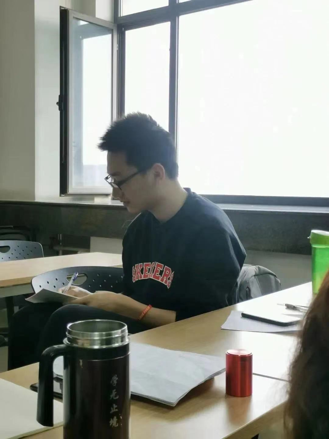 他的科研之路在研一就已经初步开启了,导师在讨论班上提供的专业书籍,他会仔细研读,从中发现其中的创新之处,拓宽自己的思路。在研二确定了研究课题之后,他会不断实践操作并及时交流反馈。科研之路上,有迷茫、有紧张、有激动、有欣喜。我们既不要害怕科研,也不能轻视科研,科研中要保持热情,更要保持严谨的态度。当然也会遭遇各种困难,但是只要不放弃,坚定目标就一定会有所成就。此外,他说要劳逸结合,松弛有度,课余时间,可以看看电视剧,和同学一起打打羽毛球,适当地锻炼身体,保持一个健康的身体和良好的生活作息才能更好的投入学习。