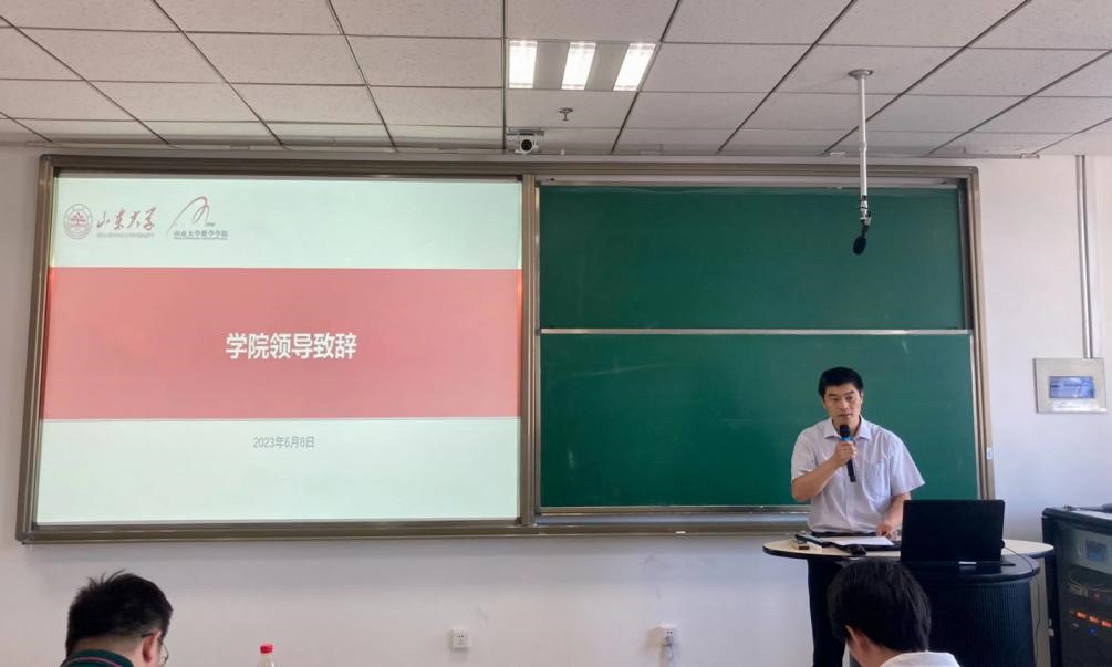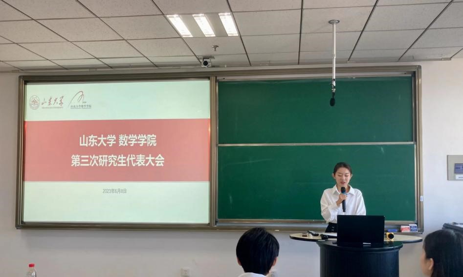 上午8时30分,大会在嘹亮的国歌声中开幕。张艳强首先对研究生会学生干部们的工作表示了肯定,接着为研究生会下一步的工作指明方向:一是要坚定理想信念,引导广大同学坚定不移听党话、跟党走,争做有担当、有作为、有品质、有修养的山大数院人;二是要坚持服务同学,始终坚持为了同学、带领同学、依靠同学和服务同学的理念,努力建设服务型、学习型、创新型的研会组织;三是要做好榜样表率,在不断加强自身建设上下功夫,树立终身学习的观念,形成务实求效的作风。特别强调了2023年是山大和数院守正创新的历史新起点,希望大家提振精神、脚踏实地,更好地团结青年学子,为“中国梦”“山大梦”贡献力量。