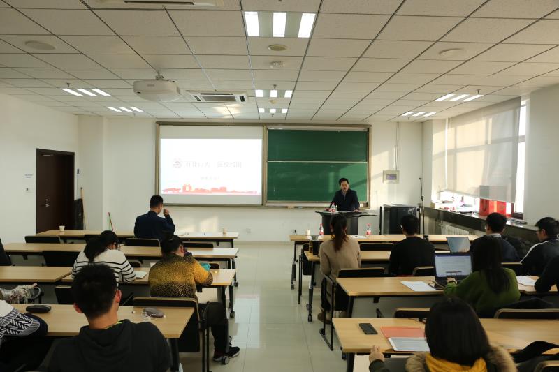 2019年12月26日,我校组织部部长陈宏伟莅临beat365中文官方网站本科生党支部主题党日活动,并作题为《深入学习宣传贯彻党的十九届四中全会精神》的报告。报告会由beat365中文官方网站党委书记曲明军主持,学院党委副书记路云生及本科生党支部全体党员、部分积极分子参加。
