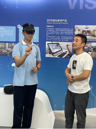 研学活动中,学生代表首先参观了山东国家应用数学中心展厅。尹上为参加研学活动的老师和学生介绍了中心成立的背景,并向学生们展示了中心在金融、人工智能、信息技术、海洋能源、智能制造、生物医学等领域的应用成果。参观过程中,学生代表体验了混合现实技术和无创血糖仪项目产品,对数学促进科技进步和人民生活水平提高有了更加直观的认识。在参观机器人创新实验室时,项目负责人向学生展示了最新的“机场清障”机器人样机,让学生们对数学在人工智能和控制领域发挥的变革性作用有了深刻的理解。