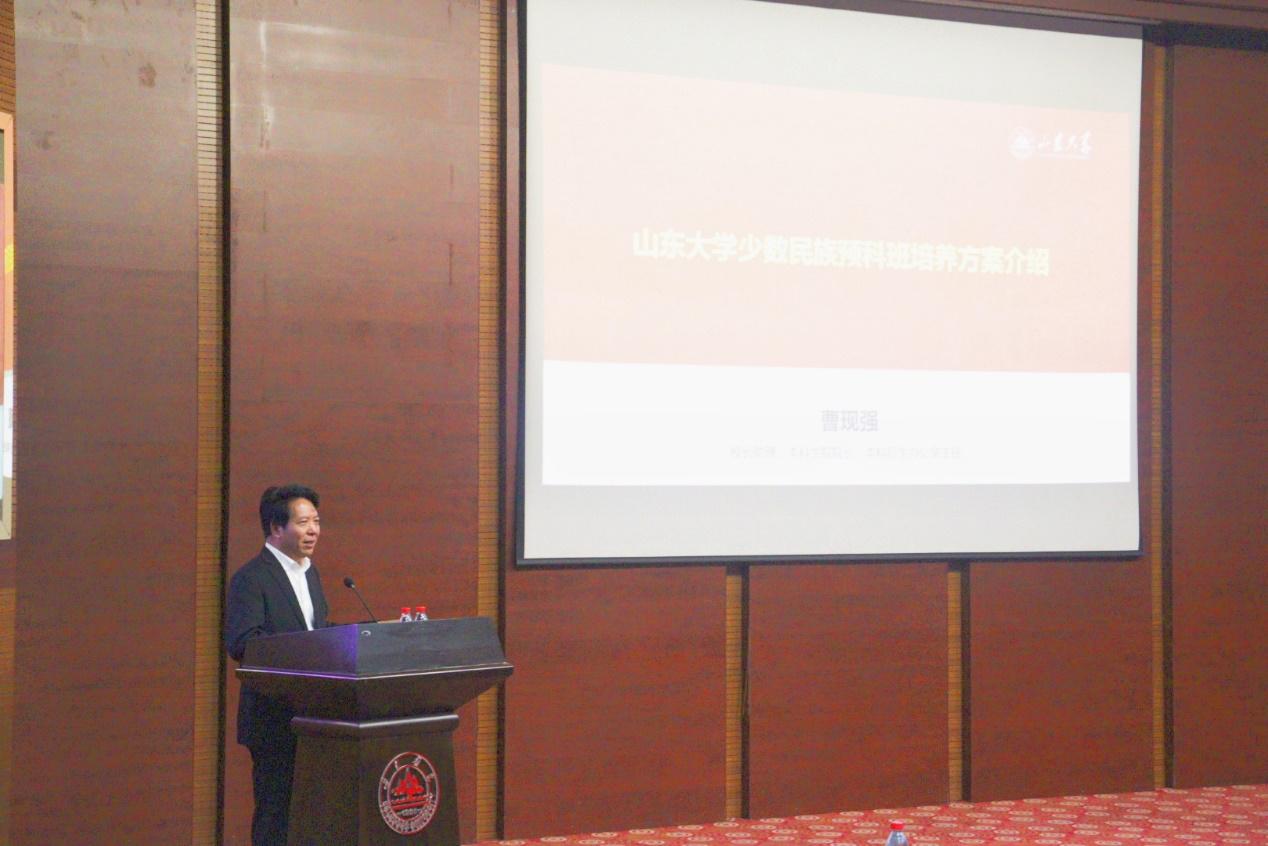 曹现强从培养管理模式及录取情况、培养方案及学业要求、发展成长为最优秀的本科生等三个方面介绍了少数民族预科班的基本情况。