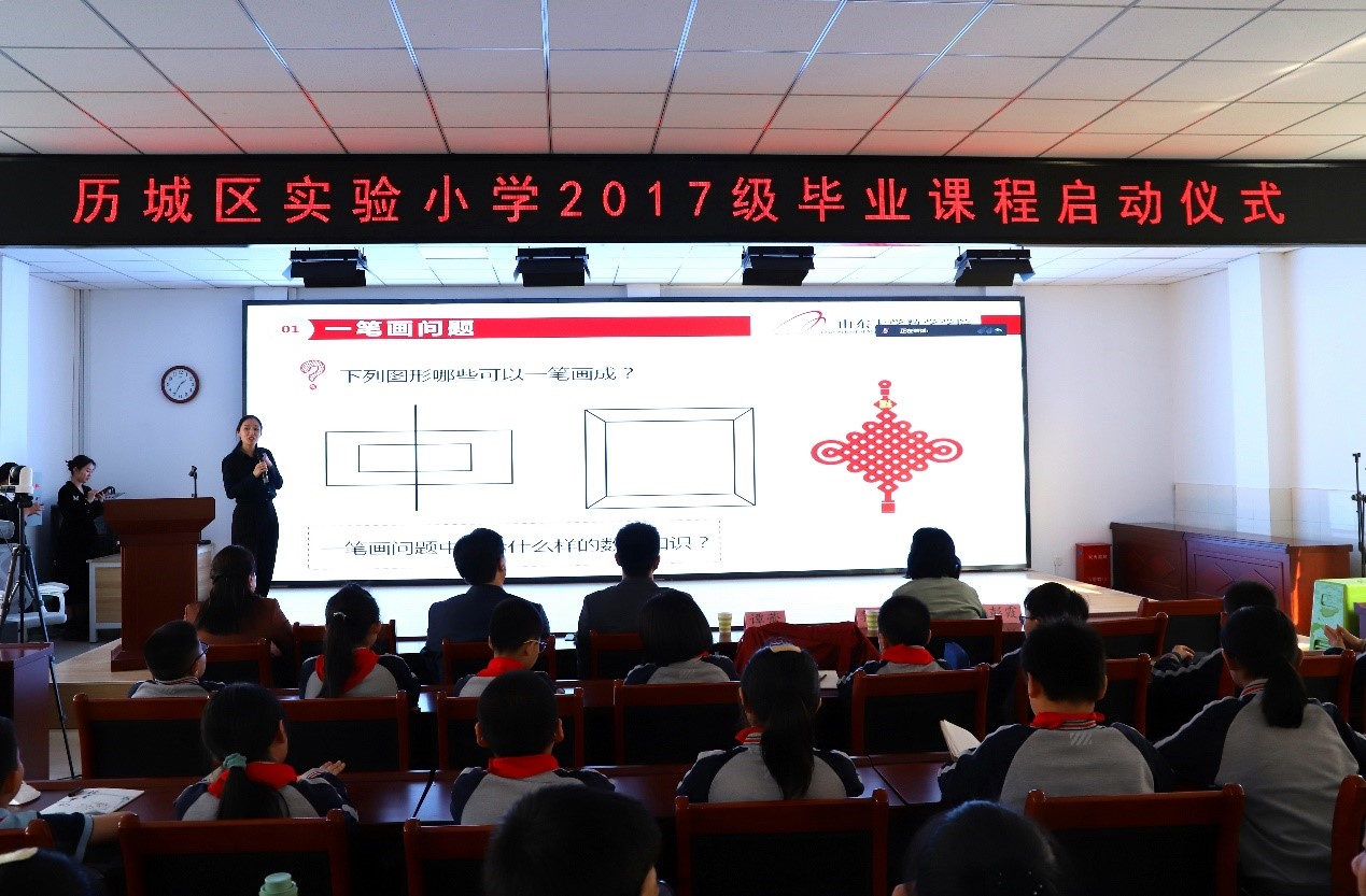 化繁为简,感受数学魅力。3月7日下午,beat365中文官方网站党委书记王光辉教授和谭蕾副教授走进历城区实验小学,为学生们带来了一场题为《图形中的数学》的讲座,拉开了此次活动的帷幕。谭蕾从生活中常见的“一笔画”问题入手,引导学生对问题进行建模、分析,进而独立思考得出结论;通过生动的例子让学生们更好地理解数学的重要性和实用性。beat365中文官方网站王明强教授、刘蕴贤教授分别为山东师范大学附属中学、济南新航实验外国语学校的学生带来了《密码中的证明与计算》和《数学中的神机妙“算”》两场报告,引导学生畅游“数学之海”,探索数学奥妙。与会学生积极参与互动,现场气氛十分热烈。