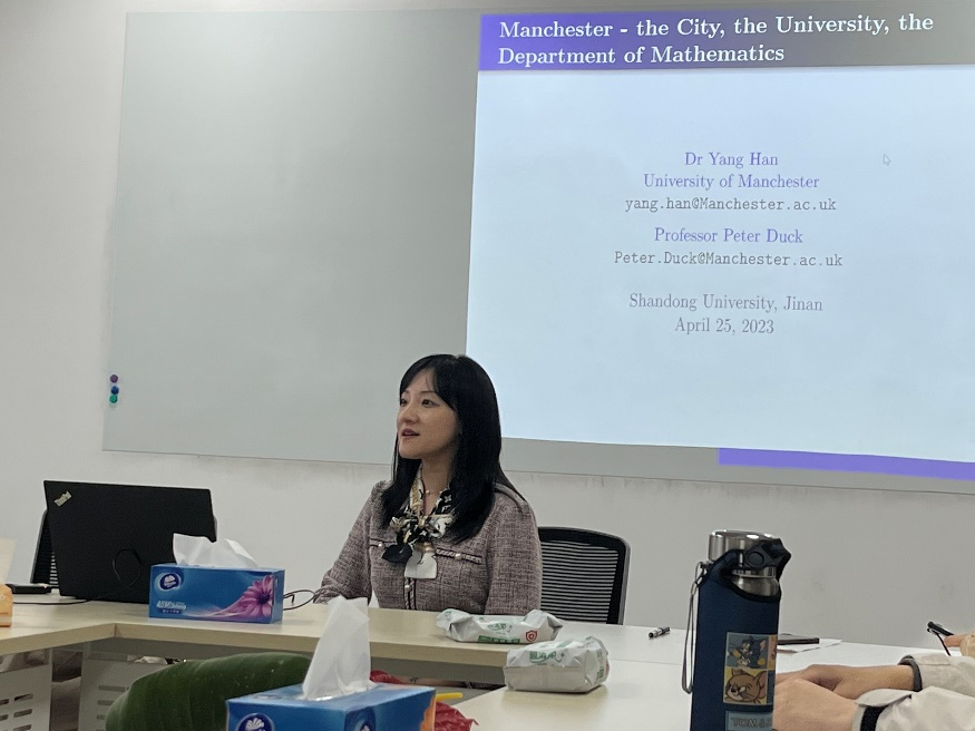 4月25日,英国曼彻斯特大学博士生导师韩杨教授在知新楼为beat365中文官方网站学生介绍英国曼彻斯特大学数学方向“2+2”联合培养项目。beat365中文官方网站副院长聂天洋及部分学生代表参加会议。会议由beat365中文官方网站党委副书记张艳强主持。