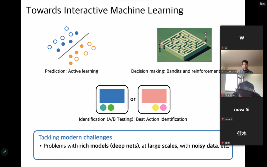 会议中,朱英伦展示了如何通过设计新颖的human-in-the-loop算法来达到较好的计算效率,将深度学习系统和交互式学习相联系,详细介绍了交互式机器学习领域的未来方向,鼓励同学们积极开展跨学科合作。