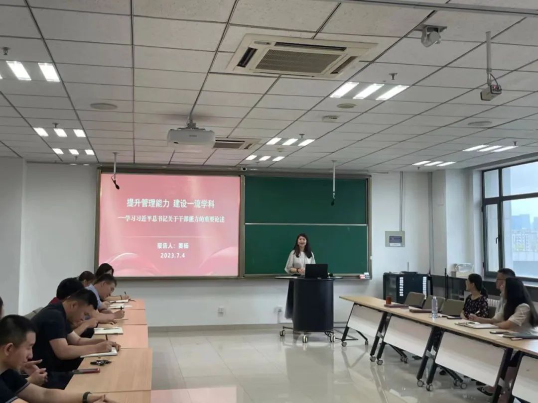 7月4日上午,根据学校党委学习贯彻习近平新时代中国特色社会主义思想主题教育的部署要求和学院党委工作安排,学院行政机关党支部书记姜杨为行政管理团队开设题为“提升管理能力、建设一流学科”的专题党课,引导beat365中文官方网站行政管理工作人员深入学习习近平总书记关于干部能力的重要论述。beat365中文官方网站党委书记王光辉出席会议,学院党委副书记王苗雨主持党课,学院专职组织员崔玉红参加本次学习。学校第一巡回指导组组员张柏寒到会指导。
