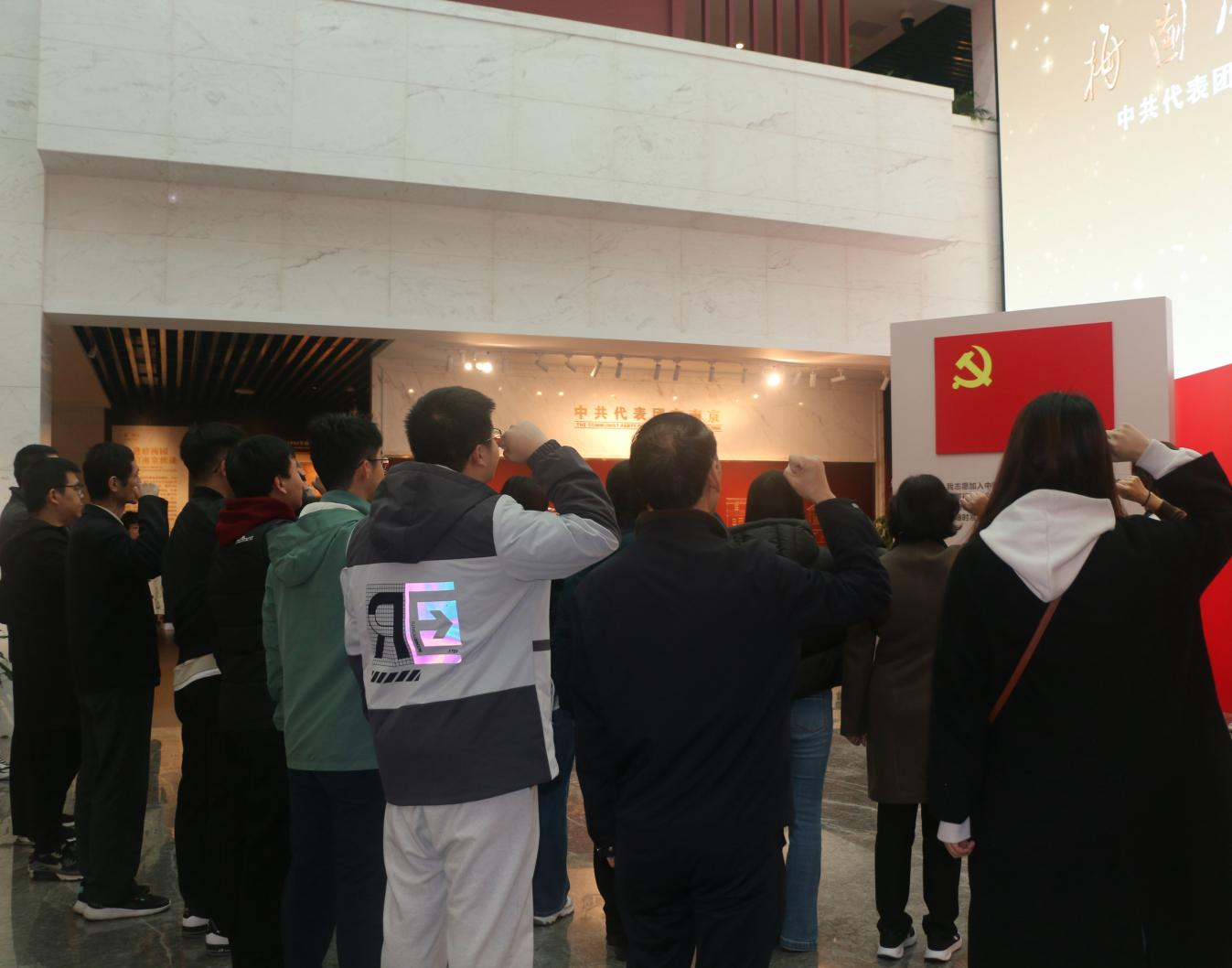 11日上午,在中共代表团办事处旧址——梅园新村纪念馆,师生们在讲解员的带领下全面回顾了国共谈判的历史,深入了解了中国共产党为实现国内和平不懈斗争的艰苦岁月,感受中国共产党人的使命担当与无畏精神。大家在此重温入党誓词,在庄严的宣誓过程中再次体悟责任与担当。