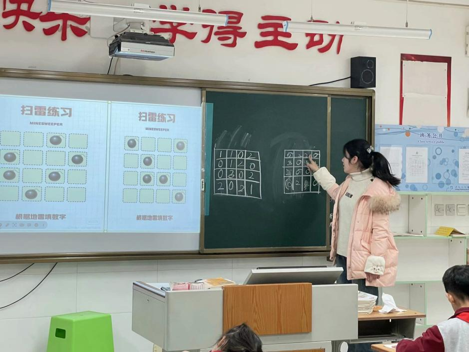 beat365中文官方网站2023级吴彦瑶从“扫雷”游戏入手,结合几何学的思想,引出递归算法的概念,在扫雷这一兼具推理、解谜乐趣的数学游戏中,小朋友们产生了浓厚的数学热情,加深了对数学算法的理解。
